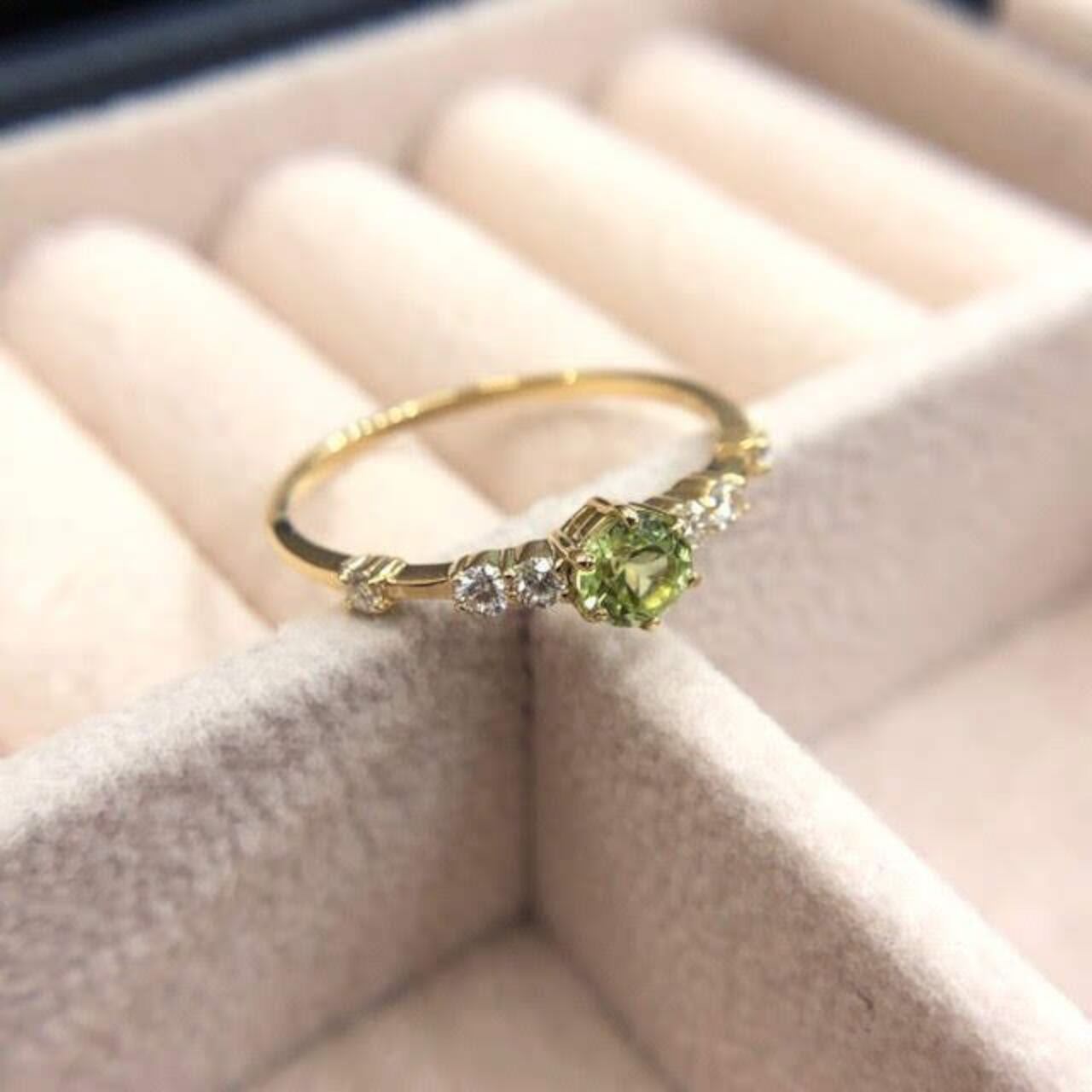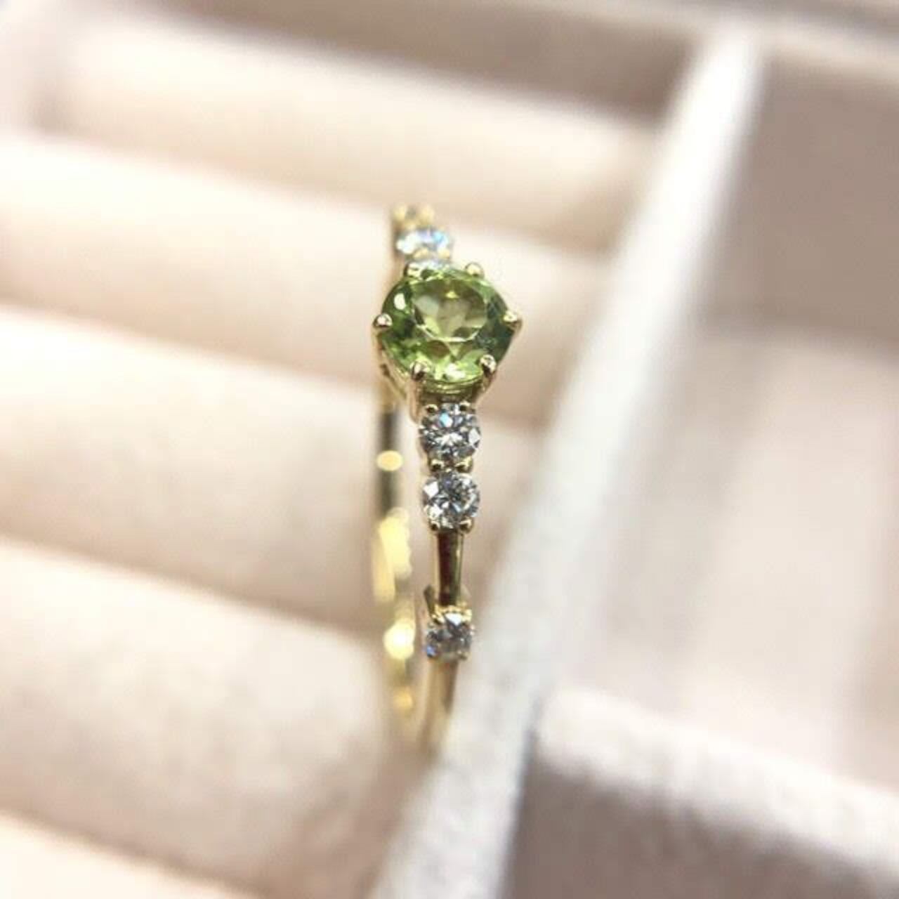K18 4ミリ ペリドット リング