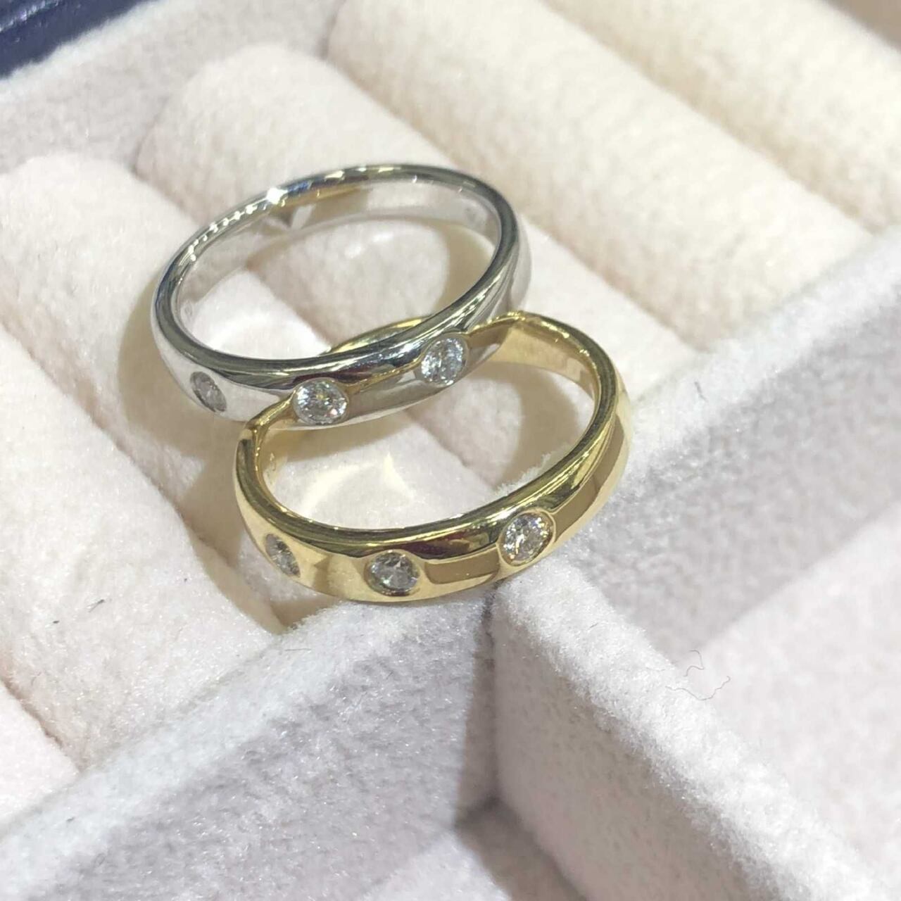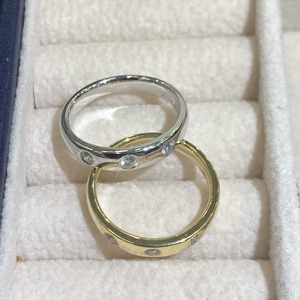 PT/K18/PG 0.1ct ダイヤ ピンキーリング
