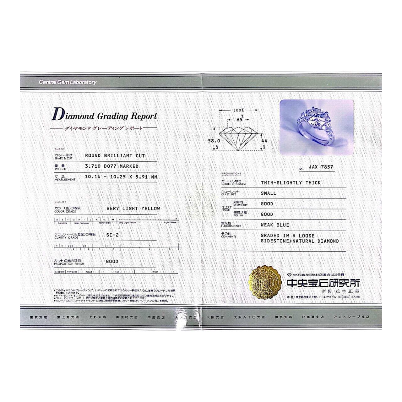 ダイヤ:3.71ct(VLY-SI2-GD)