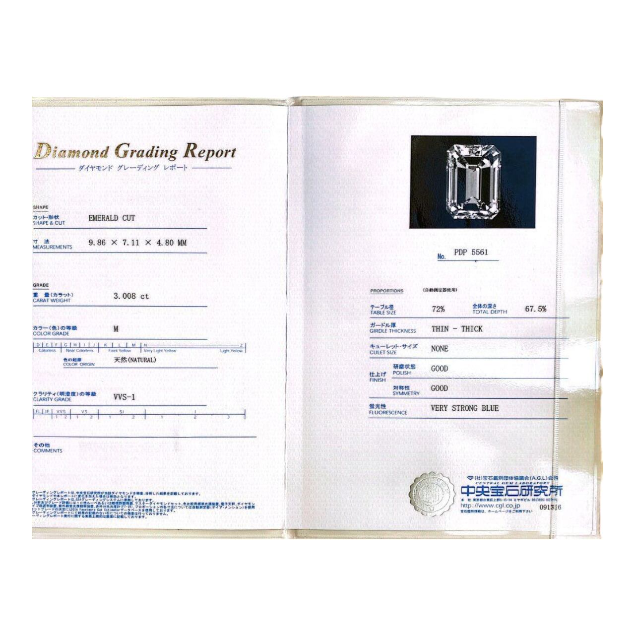 ダイヤ:3.008ct(M-VVS1)