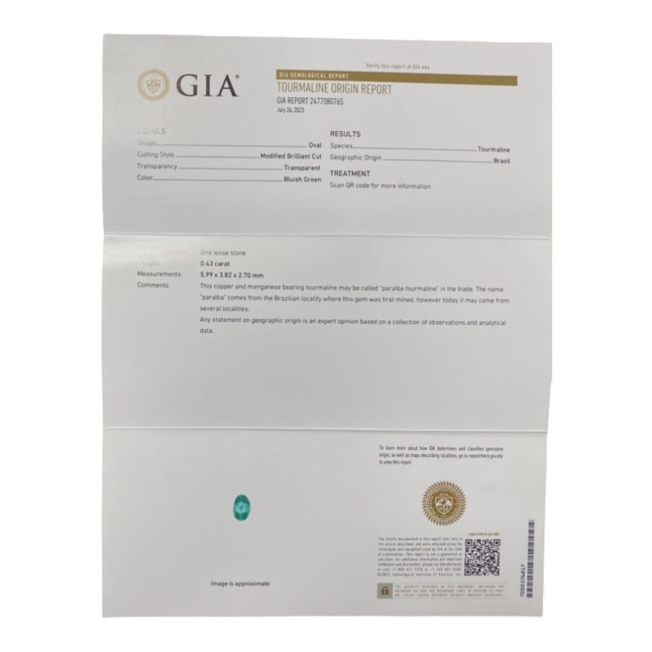パライバトルマリン:0.43ct