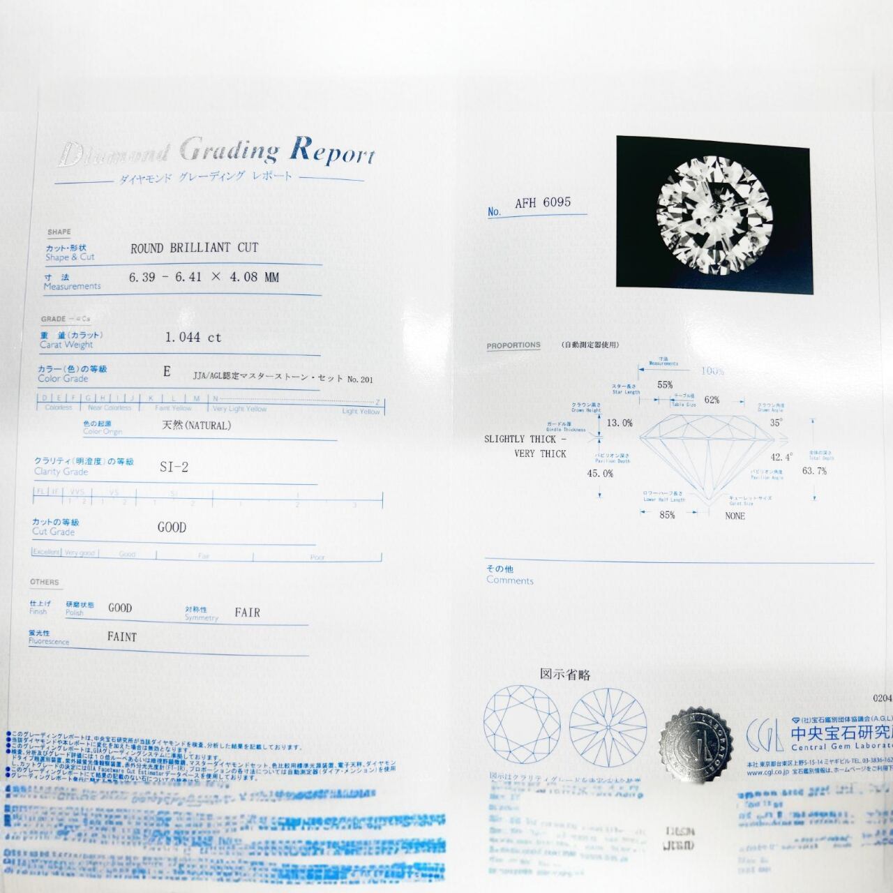 ダイヤ:1.044ct(E-SI2-GD)