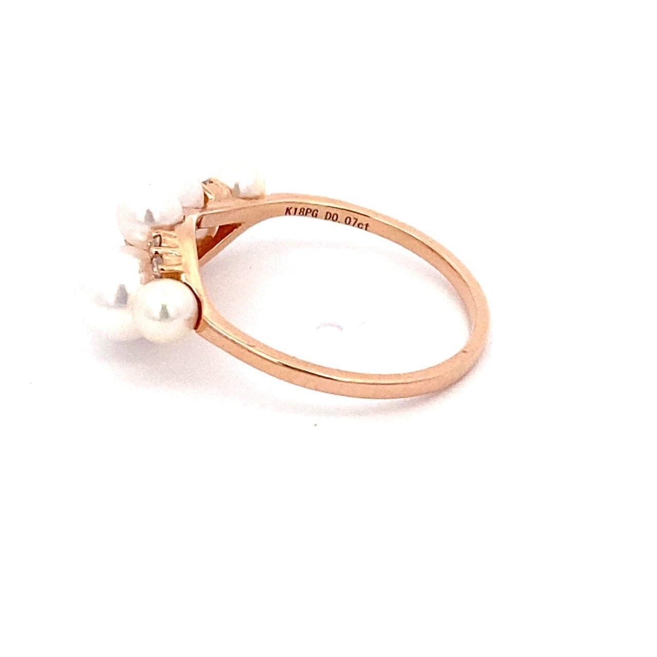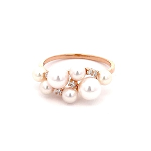PT950/K18YG/PG 5ミリ×2/3.875ミリ×2/3.5ミリ×3パール/0.07ct ダイヤ リング
